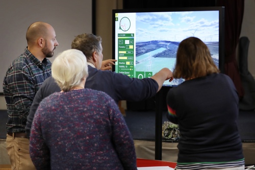 Yn y tri chyfarfod ymgynghori, roedd tîm Trydan wrth law i ateb cwestiynau, casglu barn ac egluro’r cynlluniau dechreuol ar gyfer y cynllun 22 tyrbin a gyhoeddwyd yn ystod yr haf.